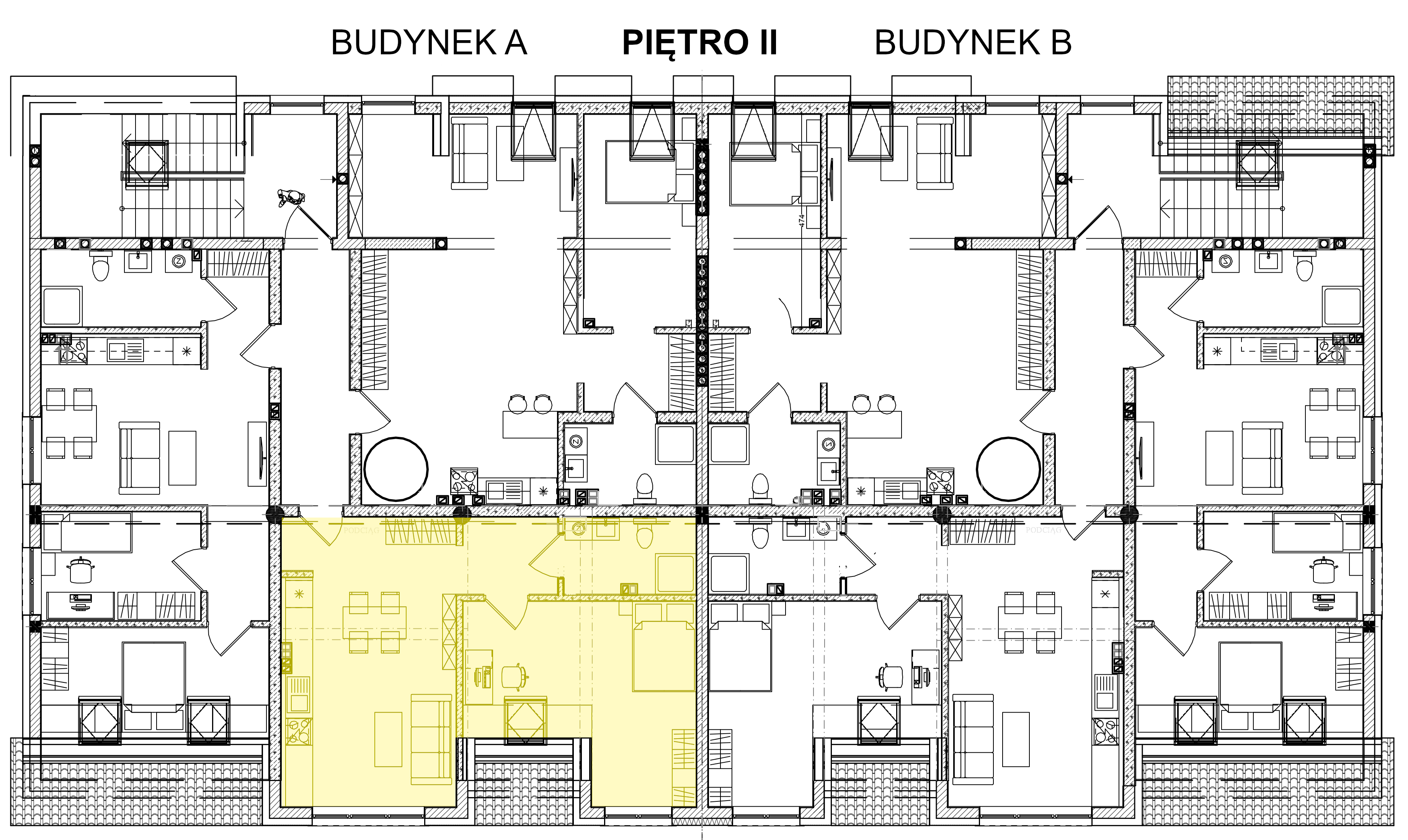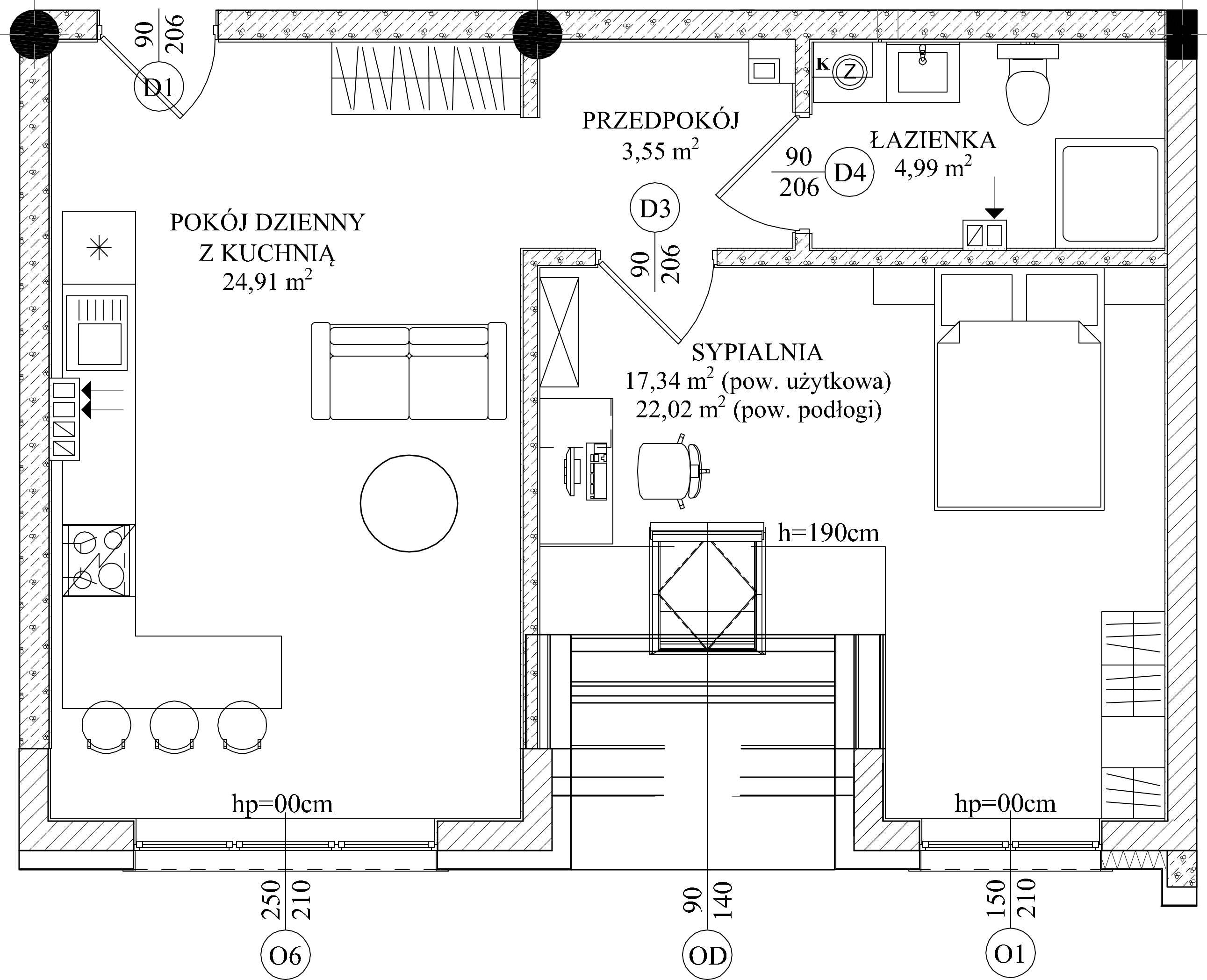 2. Powierzchnie pomieszczeń, lokalizację przyborów sanitarnych, rozmieszczenie punktów instalacyjnych itp. podano zgodnie z projektem budowlanym. Mogą wystąpić niewielkie różnice w powierzchniach i usytuowaniu elementów powstałe w trakcie realizacji prac budowlanych.