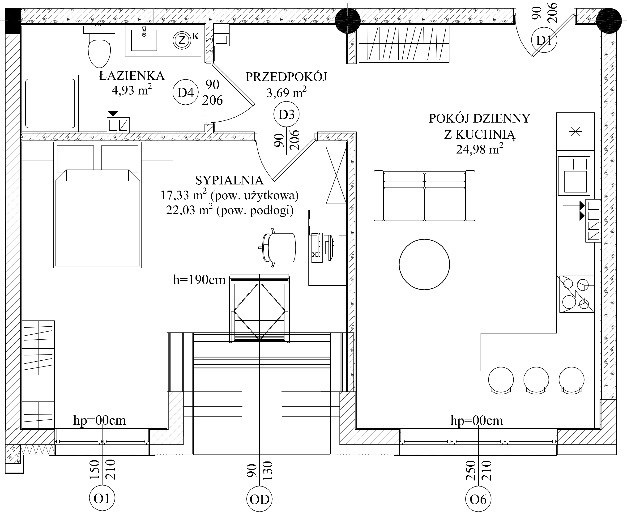 2. Powierzchnie pomieszczeń, lokalizację przyborów sanitarnych, rozmieszczenie punktów instalacyjnych itp. podano zgodnie z projektem budowlanym. Mogą wystąpić niewielkie różnice w powierzchniach i usytuowaniu elementów powstałe w trakcie realizacji prac budowlanych.